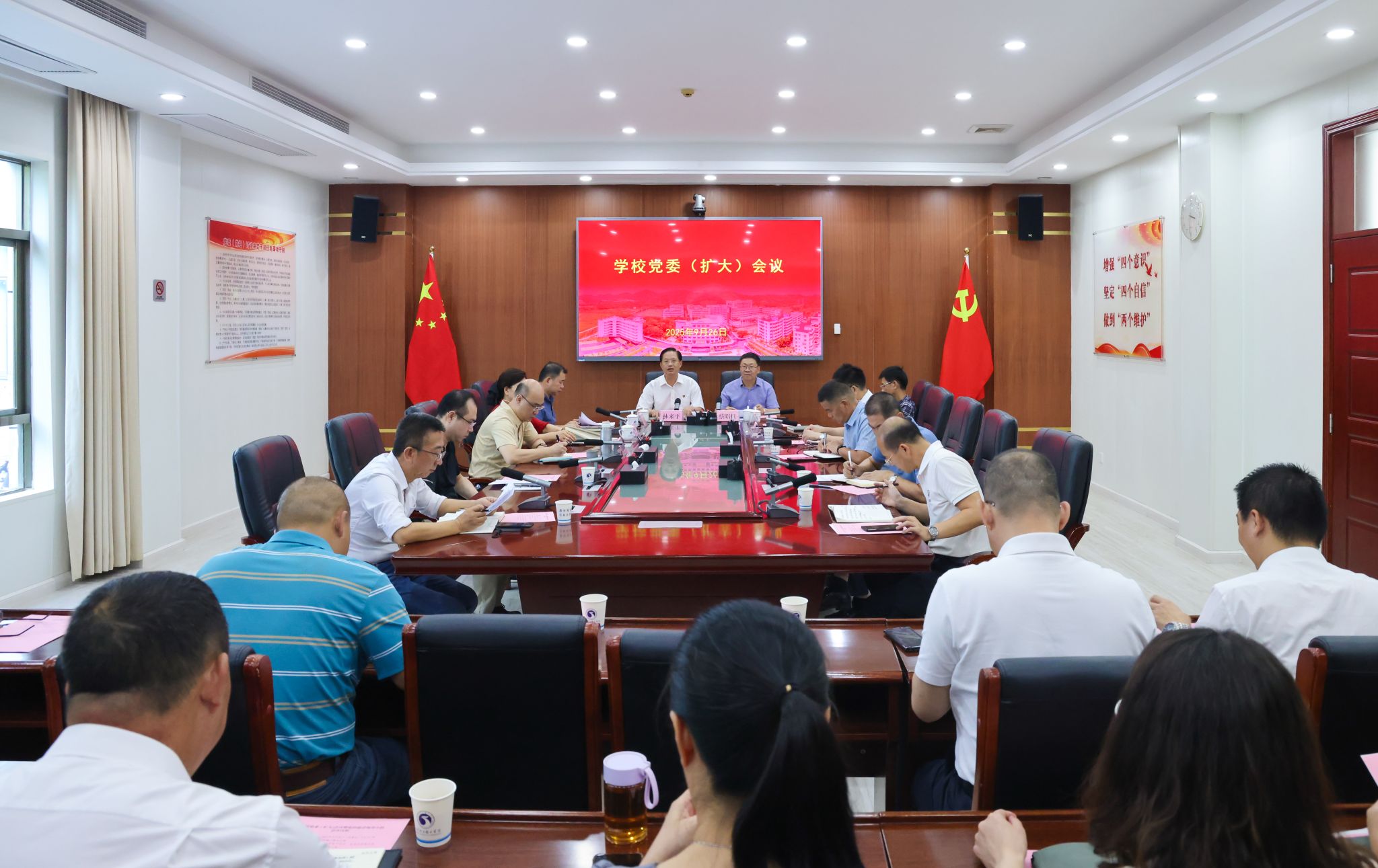 10月30日,學校在科學樓四樓會議室召開黨委(擴大)會議暨理論學習中心組學習會,專題傳達學習貫徹習近平總書記在黨的二十屆四中全會上的重要講話和全會精神,貫徹落實省委常委會(擴大)會議、市委常委會(擴大)會議以及...